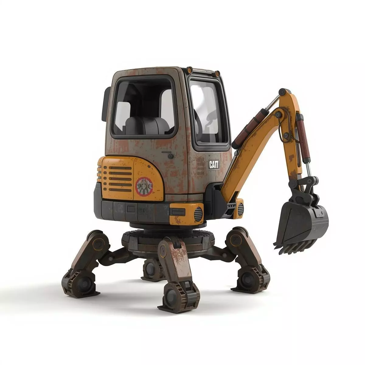 The Stylized Chibi Sci-Fi Excavator Walker is a creative 3D model that reinterprets industrial construction machinery with a charming, futuristic twist. This model features a tall, compact excavator cabin with large glass windows, mounted atop four sturdy articulated mechanical legs. Each leg terminates in a specialized track-wheeled foot, providing a unique walking-rolling hybrid propulsion for all-terrain operation. The digging arm is designed with chunky proportions and includes detailed hydraulic cylinders and a jagged metal bucket. Professional-grade surface weathering, including extensive rust patches, paint scratches, and dirt accumulation, adds a layer of heavy-duty authenticity to its cute, super-deformed design. This versatile walker is an ideal asset for stylized building games, sci-fi mining colony simulations, or as a characterful prop in digital environments.