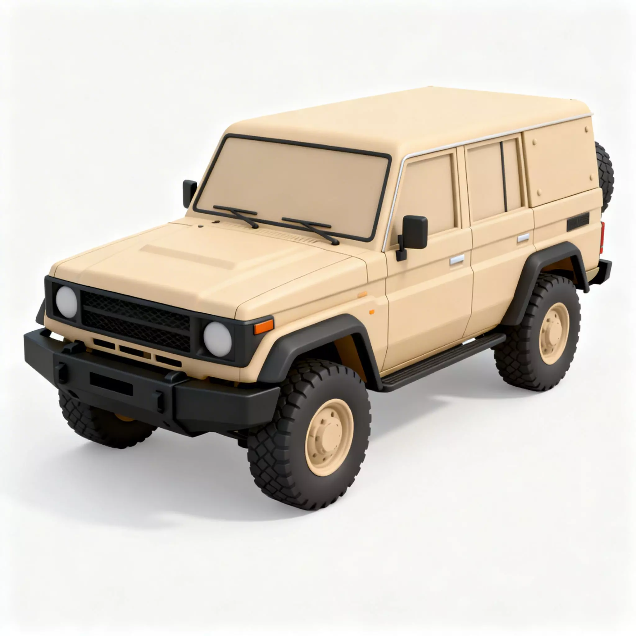 The Overall ConceptThis asset is a stylized, chibi-style 4x4 tactical SUV designed for arid environments. It features a boxy, rugged silhouette with exaggerated geometric forms, making it a perfect fit for casual mobile games, military simulations, or desert-themed urban environments.