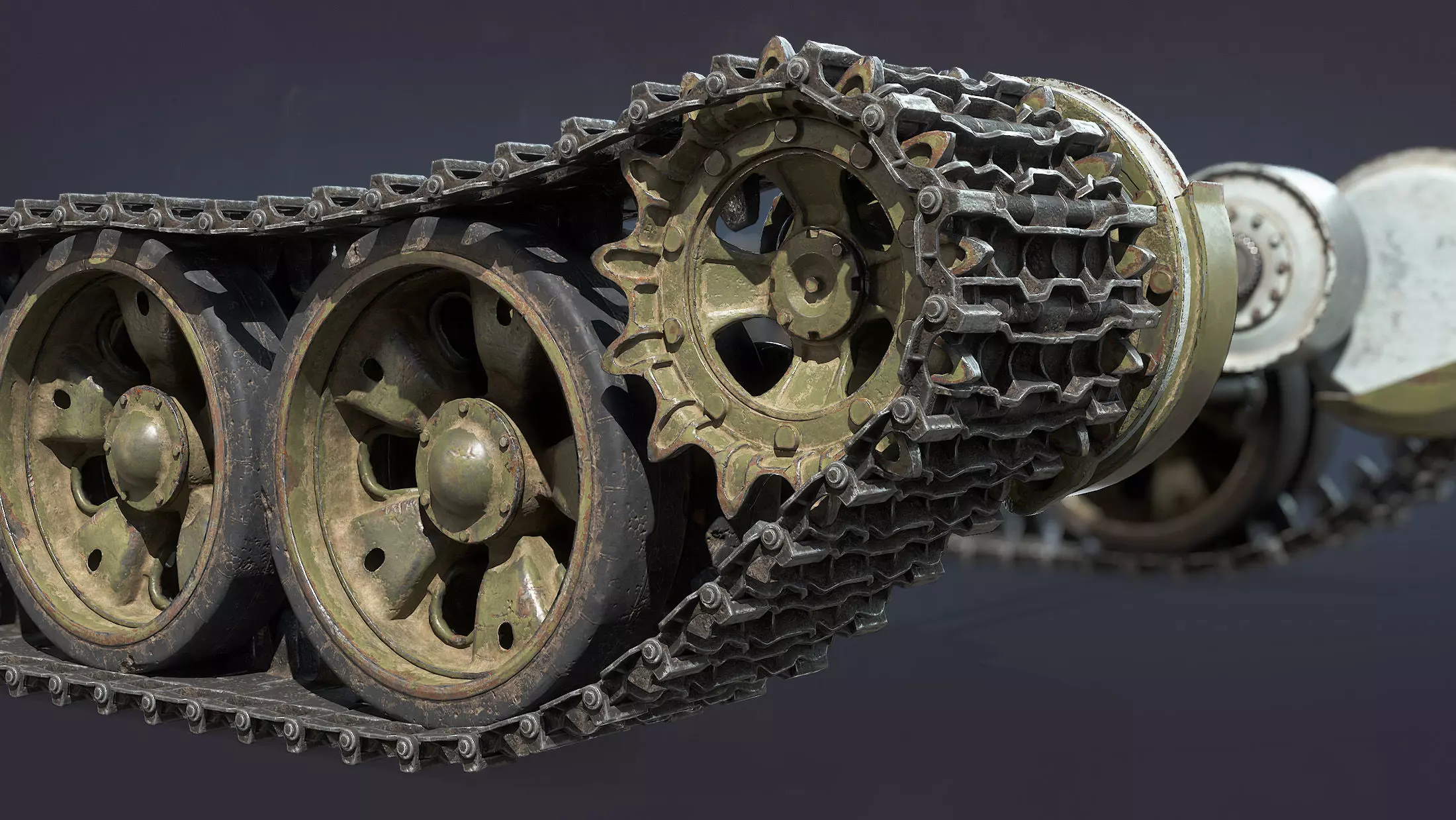 Detailed mid-poly model of chassis of Soviet tank T-55 / T-62.