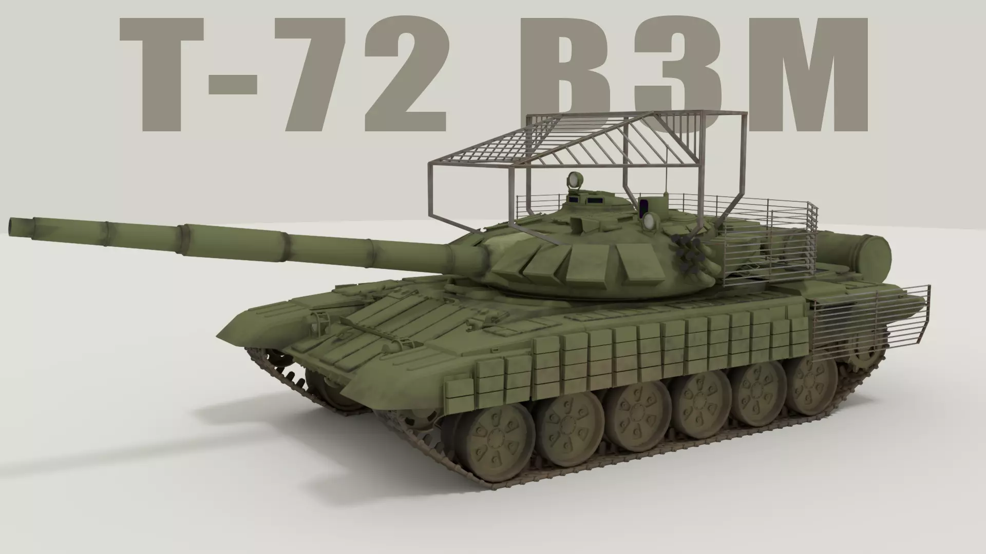 This model has been inspired by the famous T-72B3M, with a copecage added on top. The texture represents the standard paint job for this vehicle.