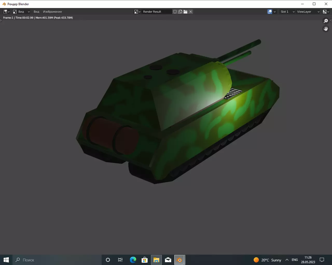 The model has material settings that define how surfaces look (color, shine, transparency, etc.).