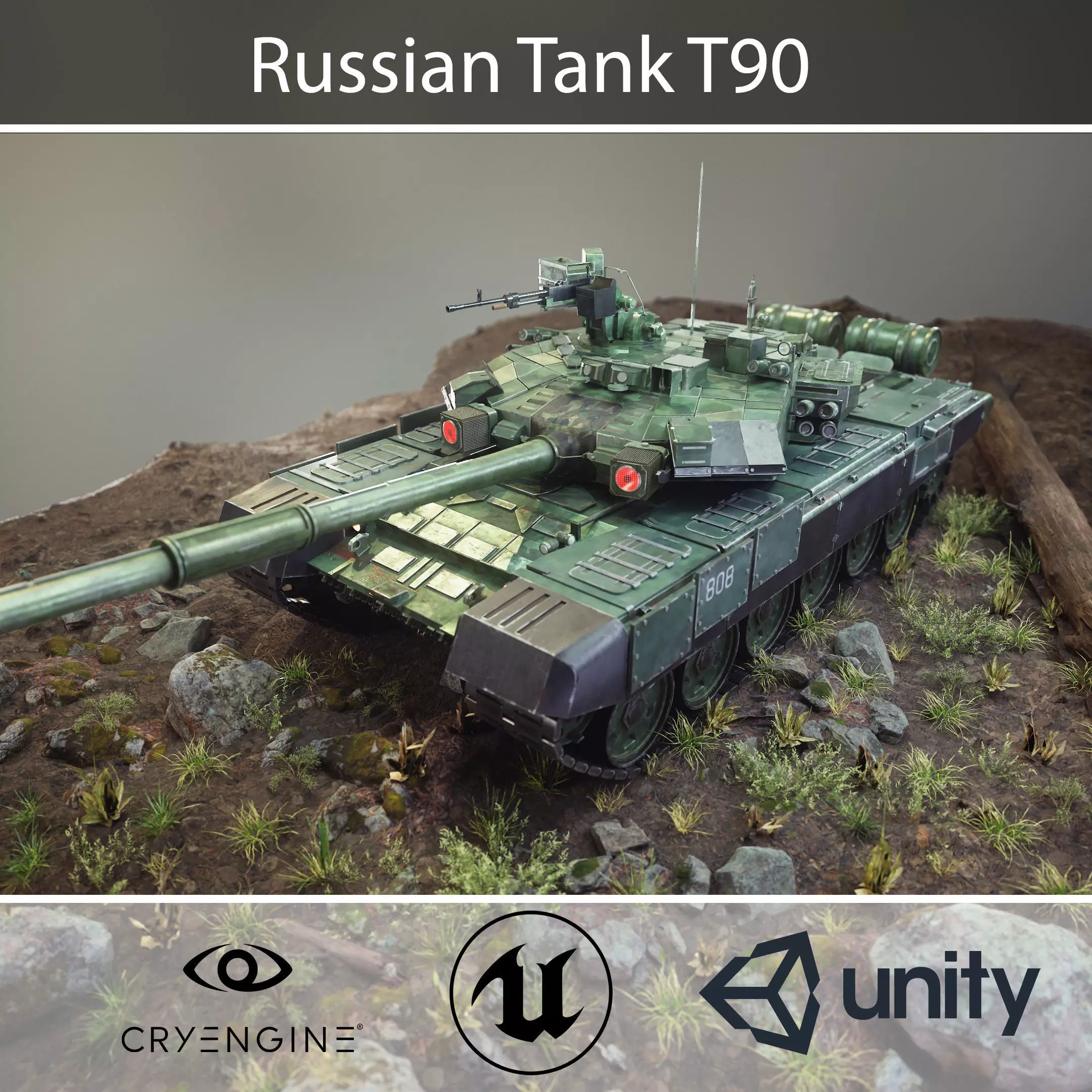 High quality low poly model. This model can be used in Unreal engine, Unity, Cryengine and other engines. T90 - Is a legendary Russian tank that we can often see in Ukraine.