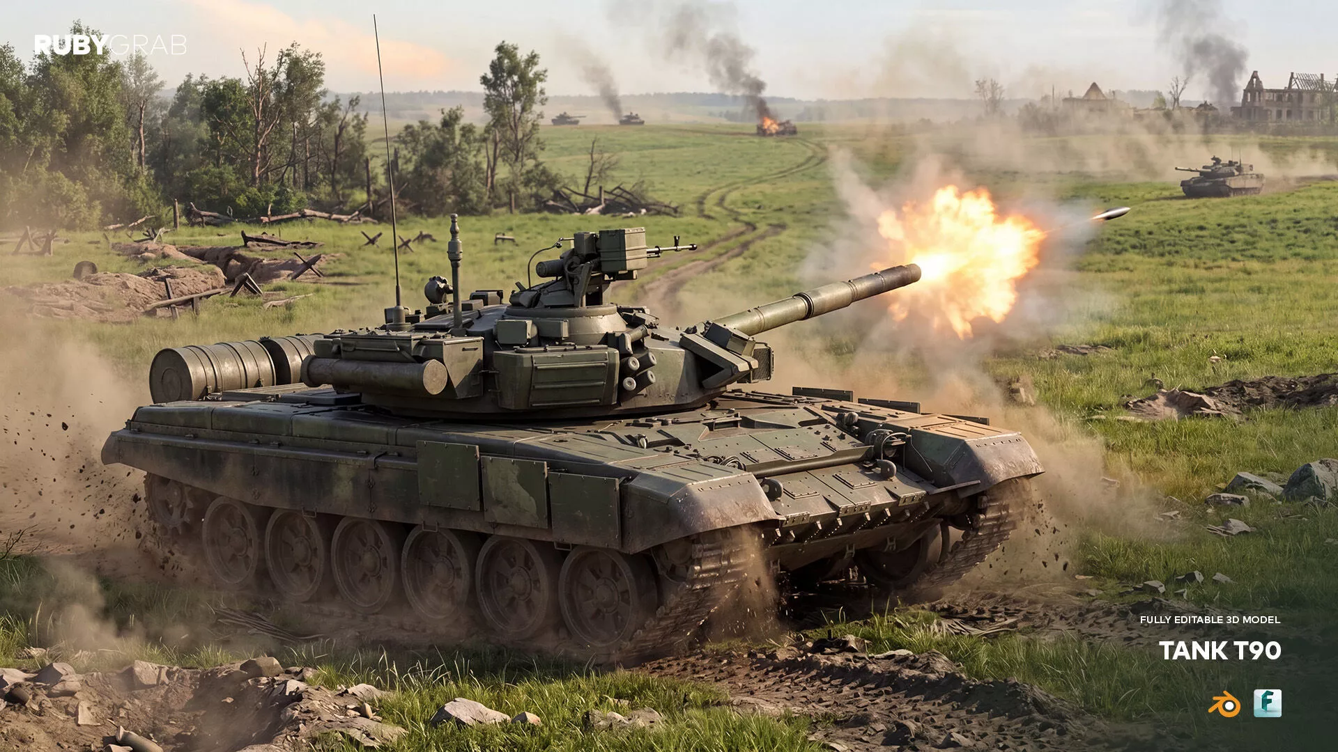 This M60 tank is a highly detailed 3D model designed for professional use in visualization, simulation, or game development. The package includes both .fbx and .blend file formats, ensuring compatibility with a wide range of 3D software and workflows.