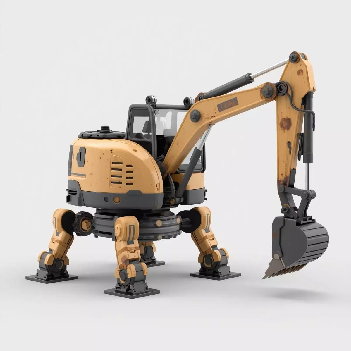 Chibi Construction Aesthetic: A charming super-deformed take on a traditional excavator, combining friendly rounded geometry with functional mechanical components.