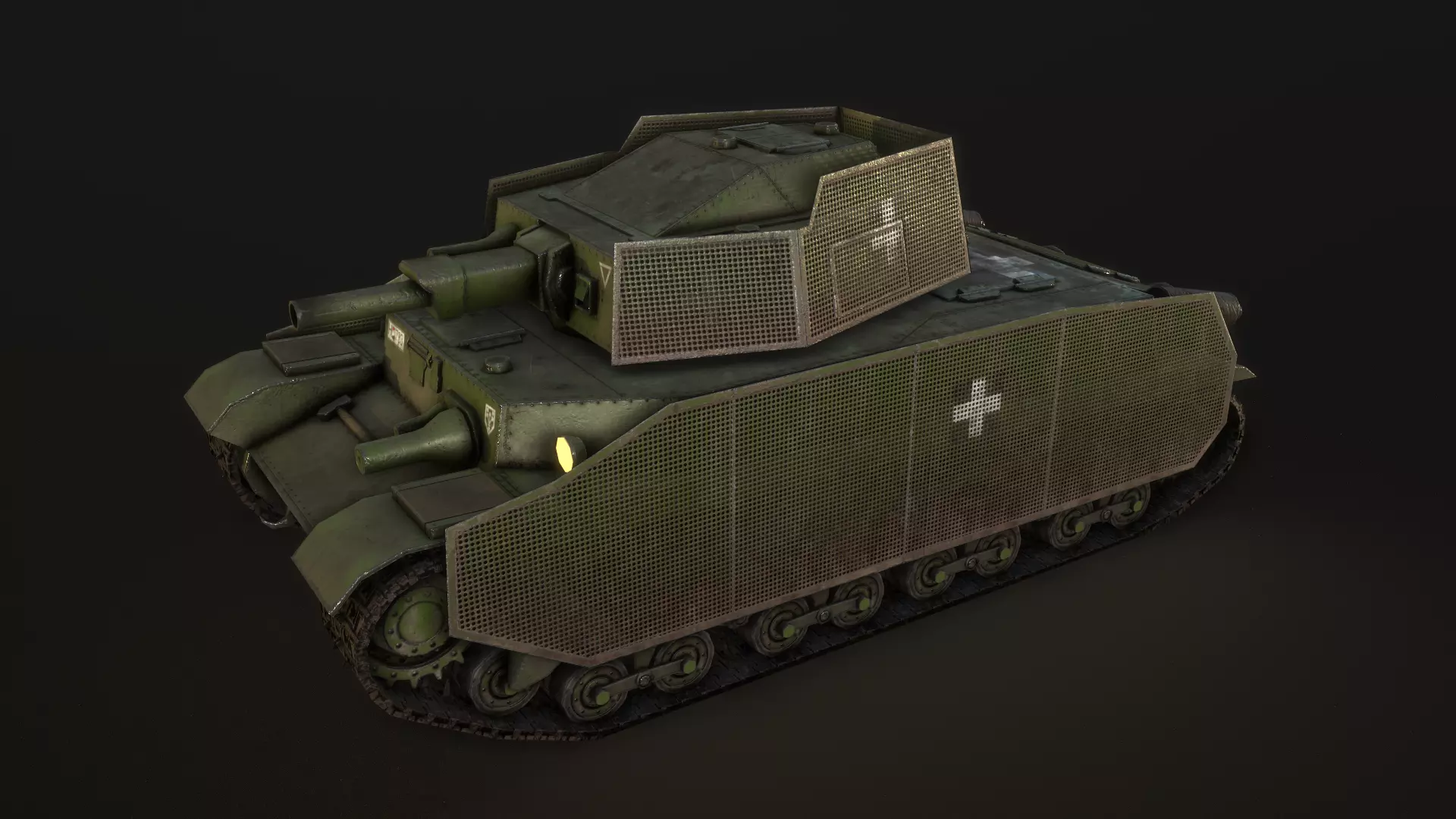 This is my old turan I lowpoly tank reworked version. Got new UV and PBR textures. Body and turret 2048 PBR textures and emission map for lightsSkirt: 1024 PBR textures (used alpha channel in color texture)Track: 512 PBR textures (used alpha channel in color texture)Wheels: 1024 PBR textures (used alpha channel in color texture)4 variation camo color and 3 color variation for tracks (normal,dirty and winter)Seperated and named parts