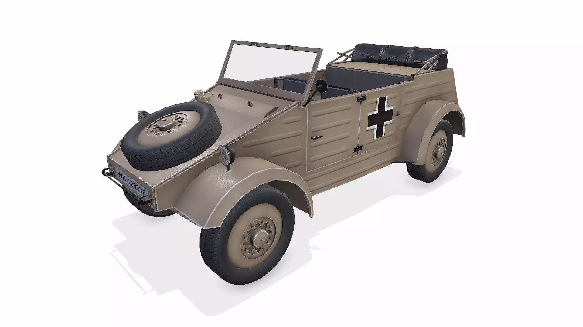 Type 82 Kubelwagen WWII German Military Car, Polygons: 14,405(26,628 tris) Vertices: 16,140