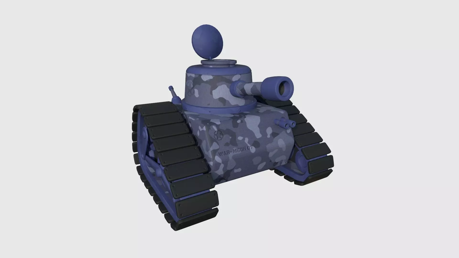 War Tank Cartoon A08 Blue Camouflage - Military Vehicle Low-poly 3D model