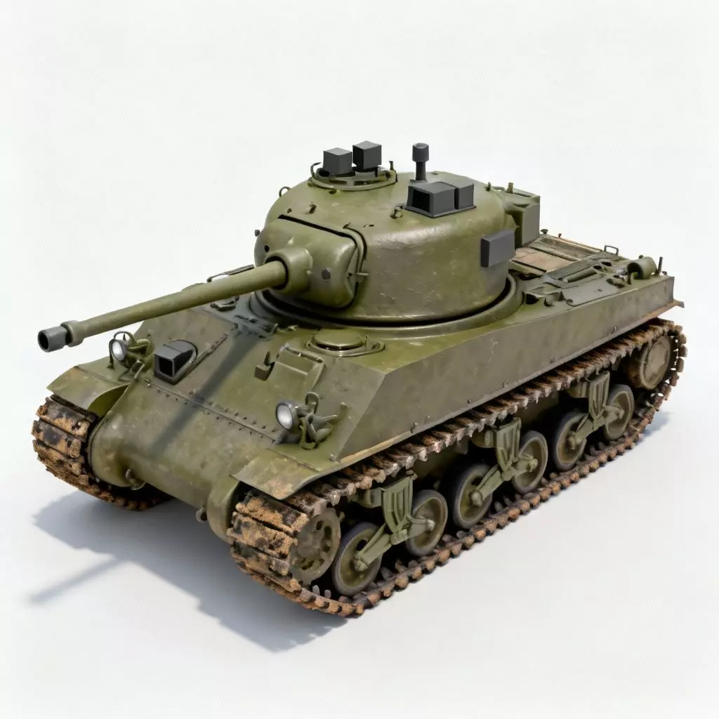 The Overall Concept This asset is a classic medium tank from World War II. It is designed to look like the famous American Sherman tank, which was the main workhorse for the Allied armies.