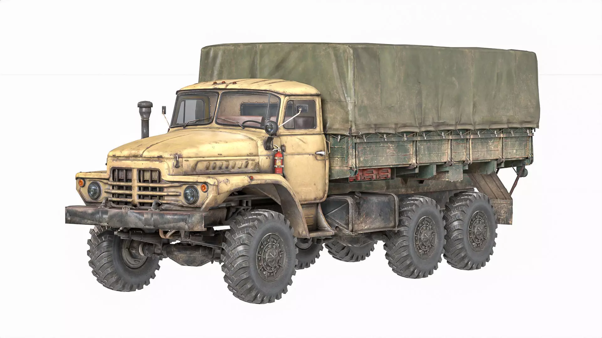 High-quality ZIL-131 Soviet military truck 3D model, fully detailed with realistic textures. This 6x6 army cargo vehicle comes with canvas cover, rugged tires, and weathered materials for authentic realism. Perfect for games, films, simulations, VR/AR, and military projects. Optimized topology and PBR textures for easy use in Unity, Unreal Engine, Blender, and Maya.