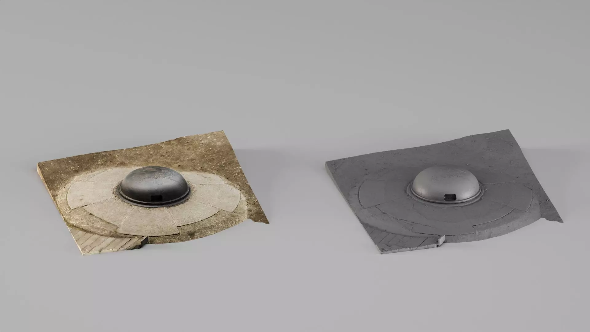 Highly realistic Old German WWII bunker observation post created using professional photogrammetry scanning technology. This model captures authentic surface wear, concrete aging, soil blending, and natural environmental imperfections directly from a real historical structure.