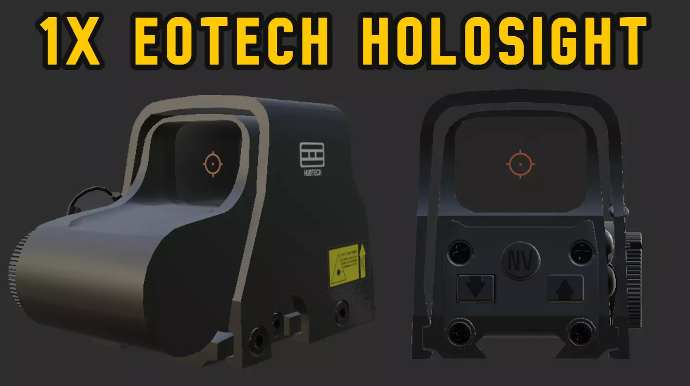 I created This model from scratch within Blender, based on the Eotech holosight. Its dimensions are accurate to life and the Picatinny mount is to scale.