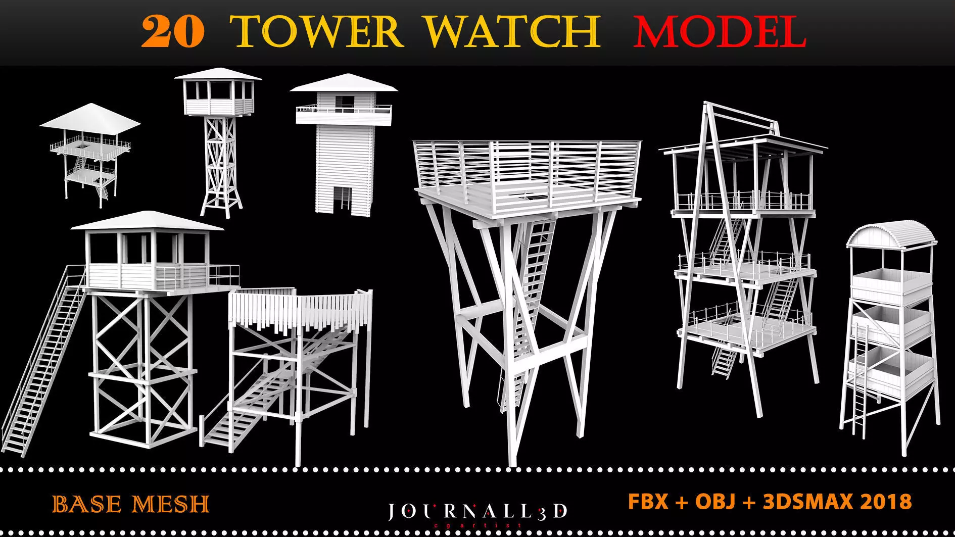 This collection contains 20 complete watchtower assets that will help you achieve the best results in your projects as quickly as possible. Also, all models have the correct and standard quadruple topology. Using these kits, you can create unlimited different medieval and new environments according to your needs.All models are medium and low poly, easy to edit.base mesh