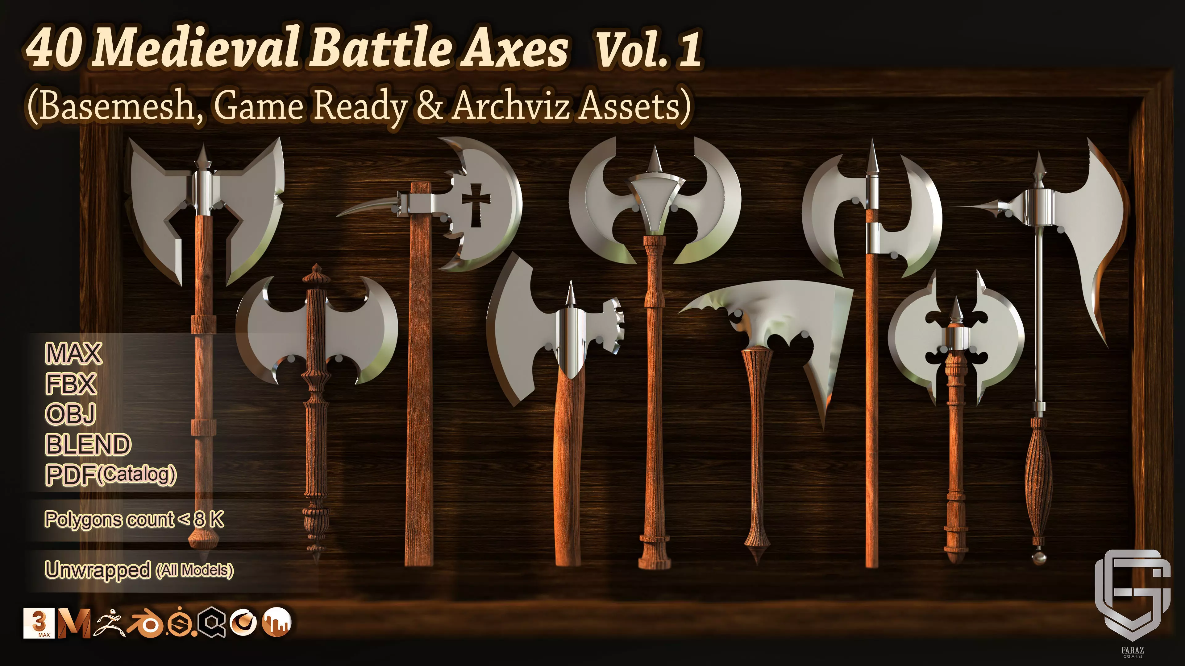 - A premium collection of 40 Medieval Battle Axes designed as Low-Poly Base Meshes, perfect for game developers, 3D artists, and animators who need optimized, production-ready assets for their projects.
