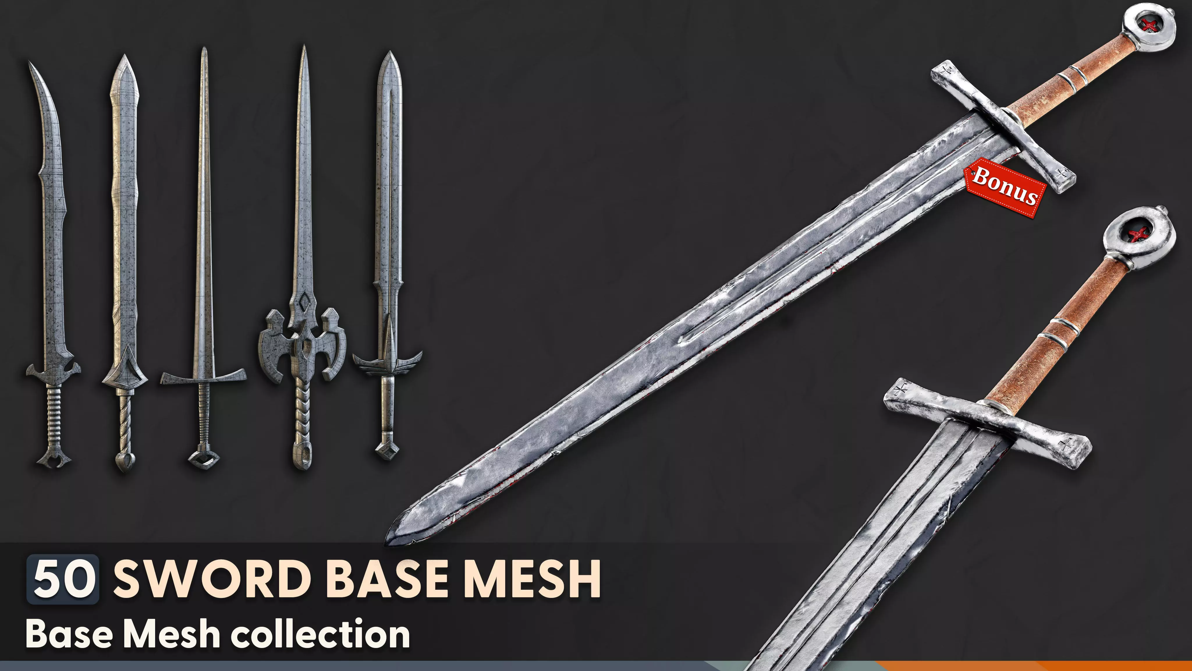 In every project, time is gold! Why spend hours modeling repetitive items when you can have a ready-to-use professional pack?We’ve created a collection of 50 diverse sword models designed to boost your workflow—perfect for both high-poly detailing and direct low-poly use.