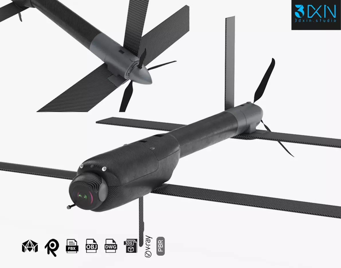 AeroVironment Switchblade 600 Predator Drone Missile is a high quality, photo realistic 3d model that will enhance detail and realism to any of your rendering projects. The model has a fully textured, detailed design that allows for close-up renders, and was modeled in 3ds Max 2018 also has 3ds Max 2015 version and rendered with V-Ray. Renders have no post-processing.