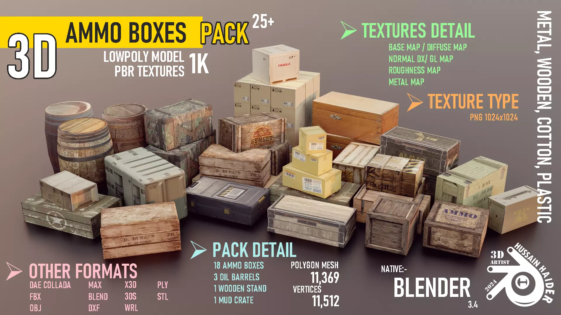 Uses Physically Based Rendering materials, which give the model realistic lighting and surface properties.