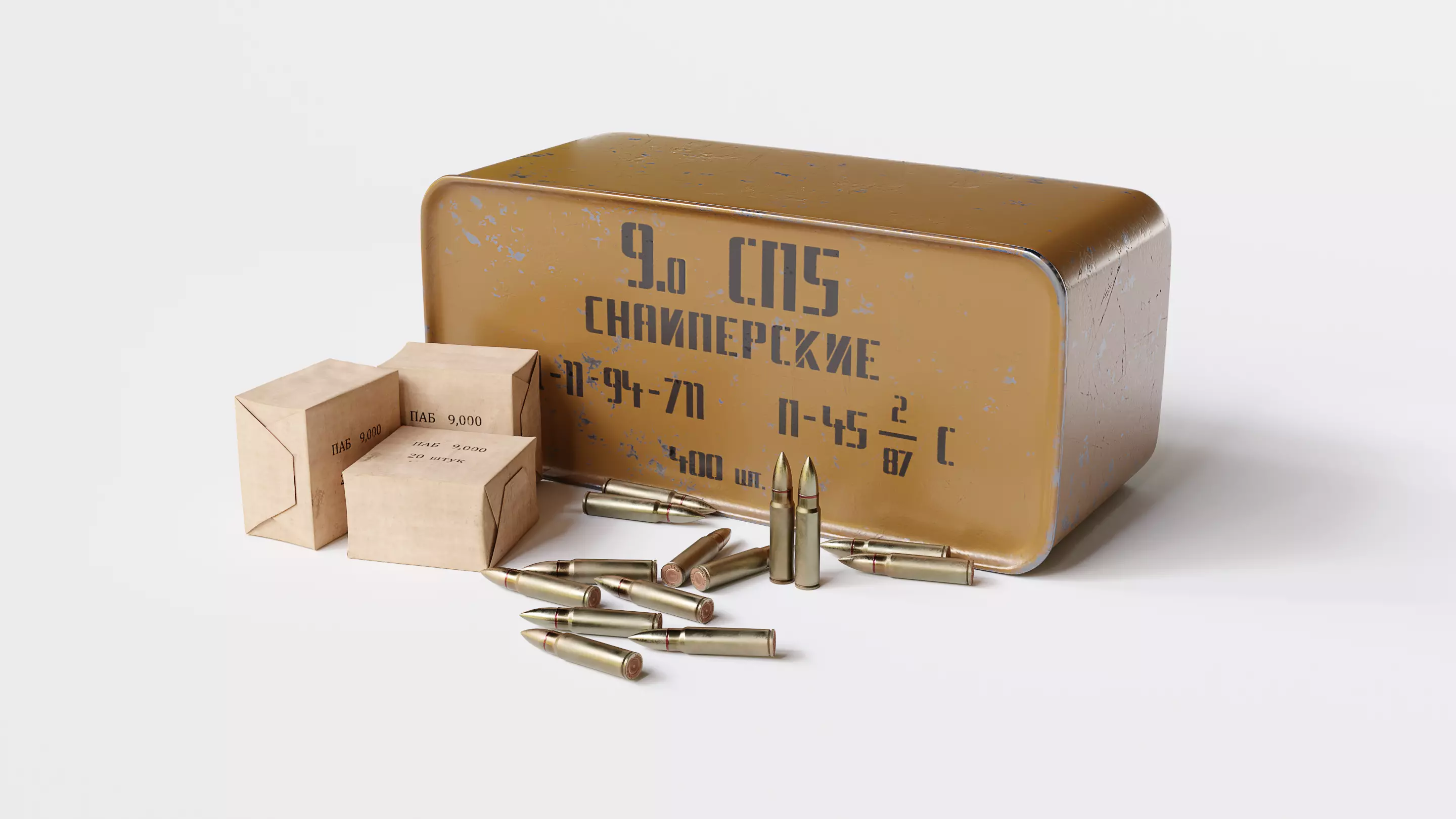 Russian Vintirez rifle's ammo pack. Includes shipping army box, cardboard package, 9*39 bullets (SP-5 bullet). Ready for use.
