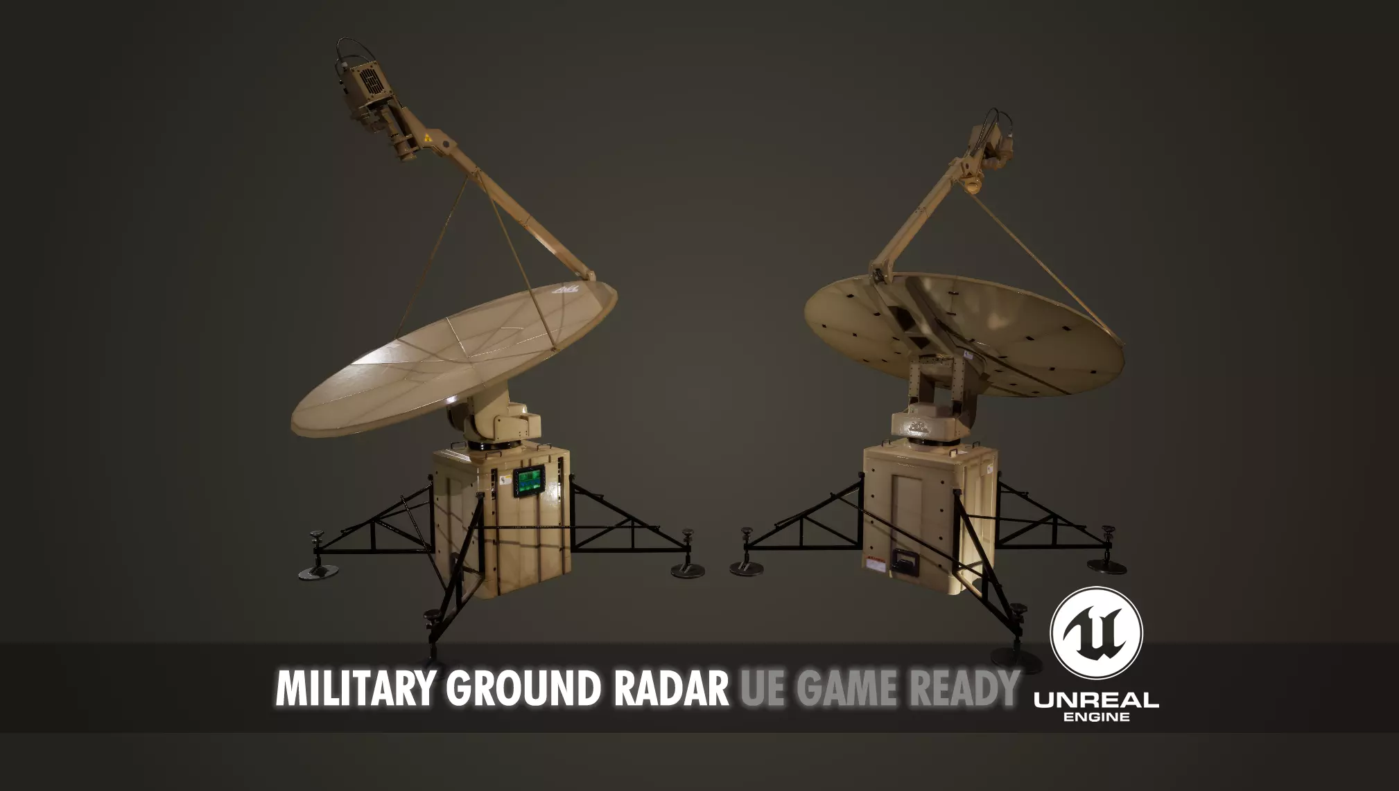 Animated Military Ground Radar.Multiple material types.3 types of material option via material instances.Suitable for realistic game environments.High resolution textures.Features:
