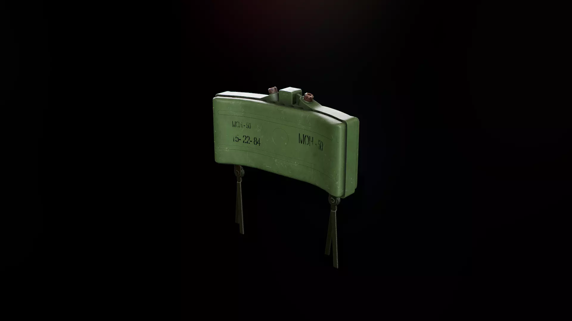 Antipersonnel landmine MON-50 low-poly 3d model ready for Virtual Reality (VR), Augmented Reality (AR), games and other real-time apps.