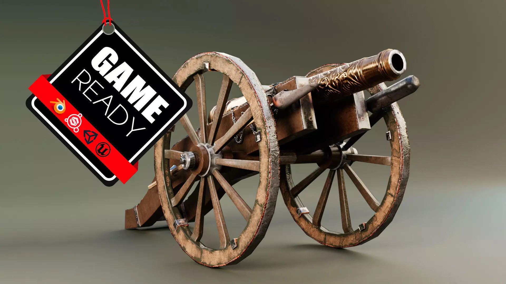 3D Low Poly VR AR Model of a Cannon