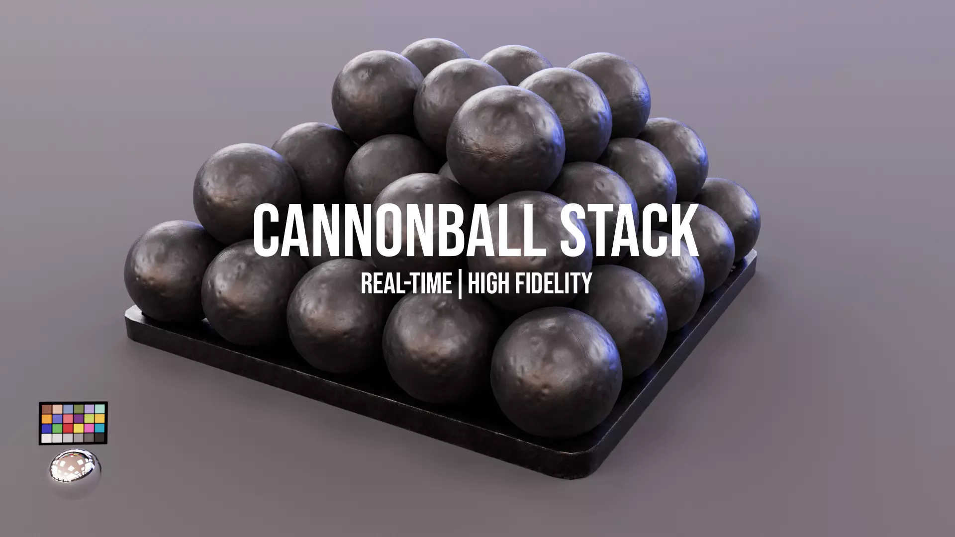 Overview:3D model of a stacked set of iron cannonballs, ideal for historical environments, war-themed games, or educational visualizations. Designed to be lightweight and visually accurate with PBR textures.