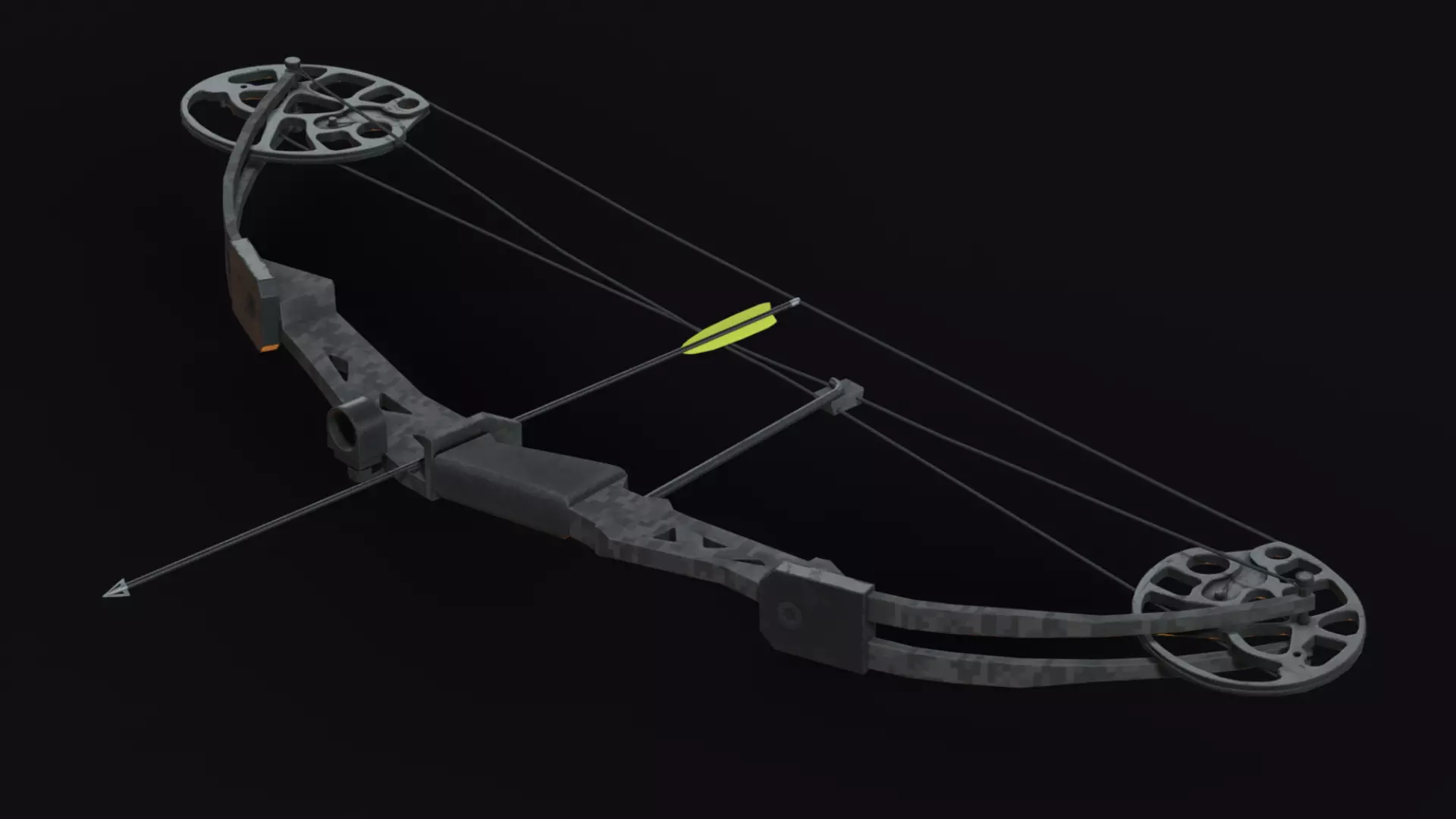 Main bow, cams, string and arrow are separate objects.