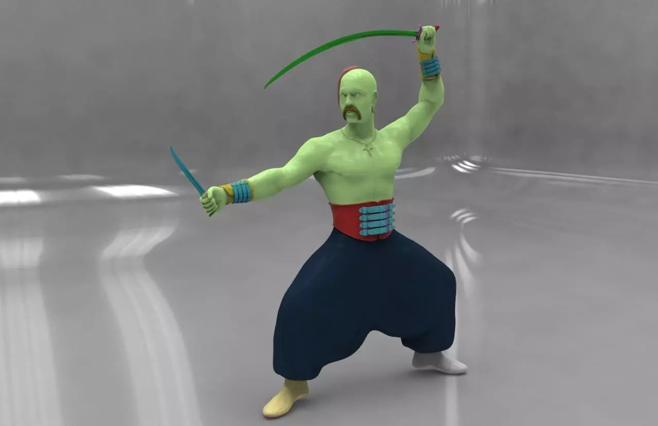 Cossak man holding sword 3D model