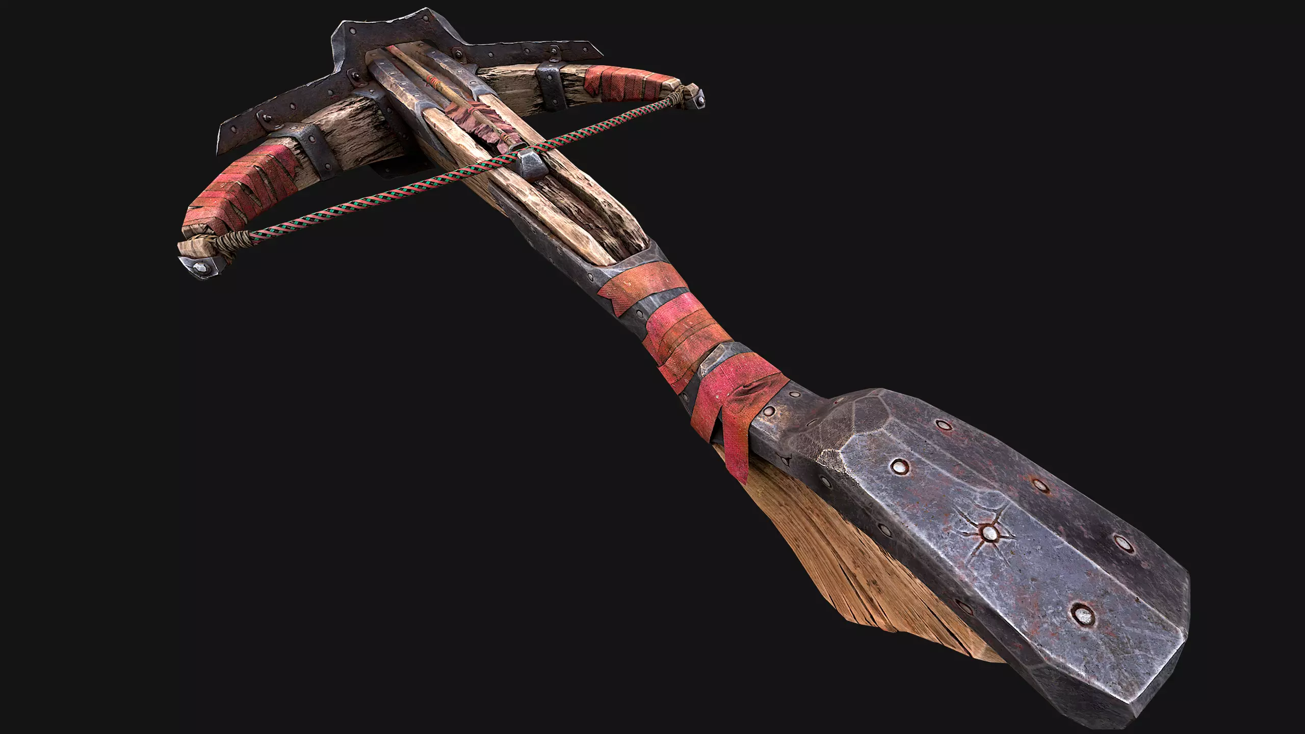 Game ready models .The model contains lods, detailed information on the images.Stylized and detailed Medieval Crossbow fully textured, sculpted and rendered with Physical based rendering (PBR) - Shown images have been rendered in Marmoset Toolbag .The set contains a model of a Medieval Crossbow and 2 arrows.