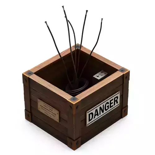 This highly detailed 3D model presents a rugged wooden crate containing a mysterious electronic device. Coiled cables and multiple thin wires protrude from the top, hinting at a complex and potentially hazardous mechanism. A prominent 'DANGER' sign on the side reinforces its critical and precarious nature. This versatile prop is perfectly suited for a wide array of digital projects, including immersive game development (e.g., action, adventure, horror, or survival genres), cinematic film and animation productions, engaging virtual reality (VR) and augmented reality (AR) experiences, or as a focal point in digital art compositions. It is also well-suited for high-quality static renderings in industrial or post-apocalyptic scenes. The model features clean topology and is optimized for real-time applications, ensuring smooth performance in game engines while maintaining visual fidelity. It comes complete with PBR textures (Base Color/Albedo, Normal, Roughness, Metalness) for realistic material representation and is fully UV unwrapped for easy customization. Supported file formats include GLB, OBJ, STL, ABC, DAE, FBX, USD, and PLY, ensuring broad compatibility across various 3D software and platforms.