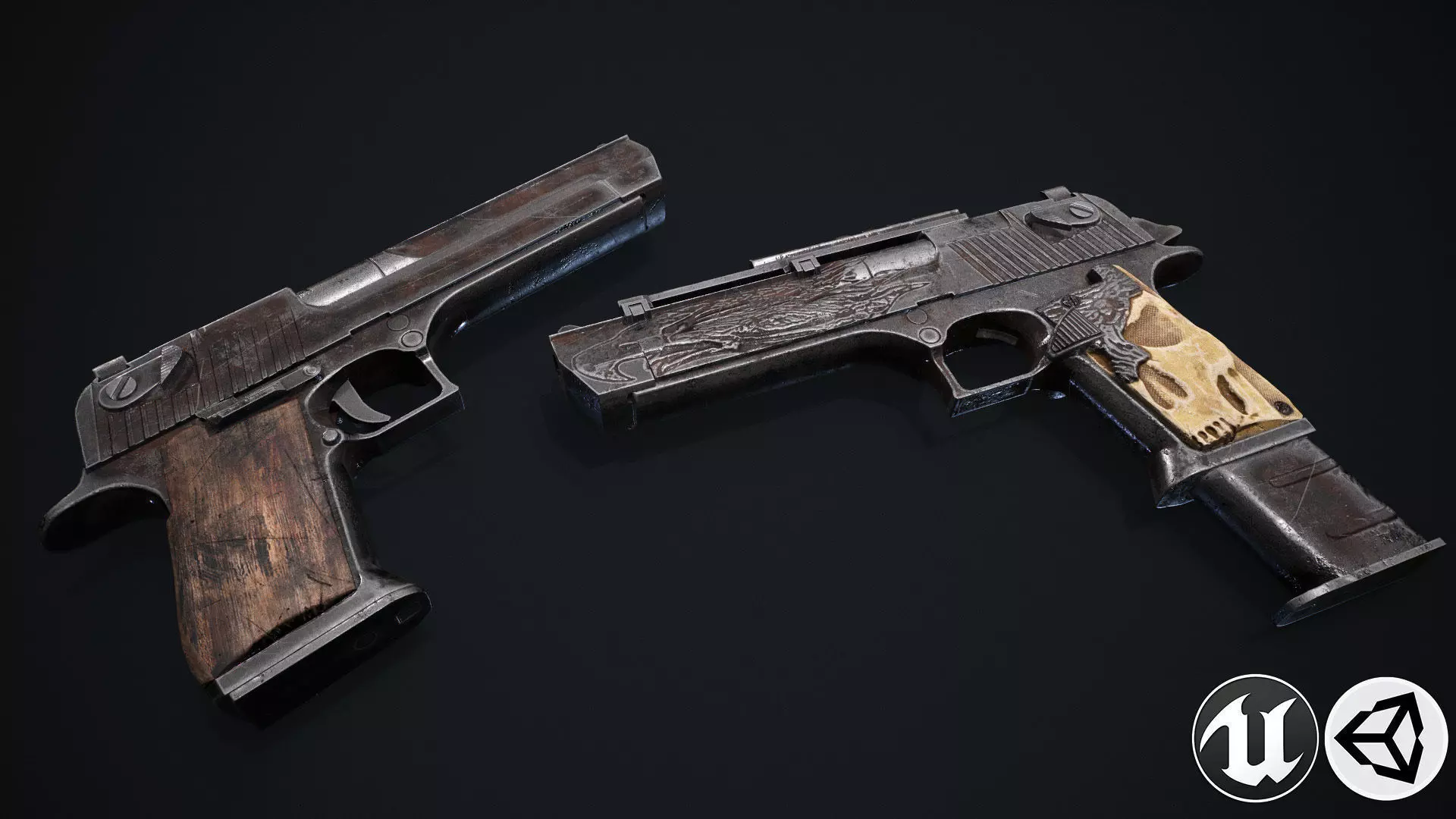 Desert eagle-3d model ready for Virtual Reality (VR), Augmented Reality (AR), games and other real-time apps. Textures made for PBR shader system. Includes several modifications.