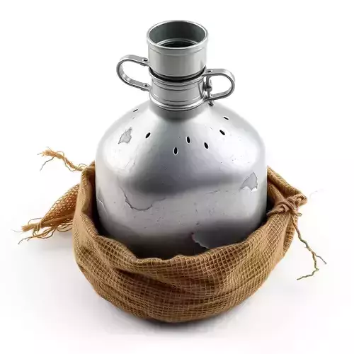 This is a meticulously crafted 3D model of a distressed military-style canteen, accompanied by a rustic burlap carrying bag. The model captures a battle-worn aesthetic, featuring realistic surface imperfections such as scratches, chipped paint, and subtle dents across its metallic body. Small, functional holes are integrated into the canteen's upper structure, suggesting ventilation or drainage. This versatile asset is perfect for a wide range of digital projects, including game development for first-person shooters, survival games, or historical simulations. It can also enhance cinematic renderings, add authenticity to architectural visualization scenes (particularly rugged or industrial environments), and enrich virtual reality (VR) and augmented reality (AR) experiences. Its gritty, authentic appearance makes it an ideal prop for post-apocalyptic settings, war-themed projects, or wilderness survival scenarios. The model boasts clean topology, ensuring easy integration and manipulation within your pipeline. It is fully UV unwrapped for efficient texture mapping and includes high-quality PBR (Physically Based Rendering) textures to deliver realistic material representation across various rendering engines. Supported file formats include GLB, OBJ, STL, ABC, DAE, FBX, USD, and PLY, ensuring broad compatibility. Optimized for real-time applications while also being suitable for high-resolution static renderings, this model is designed for exceptional visual fidelity.