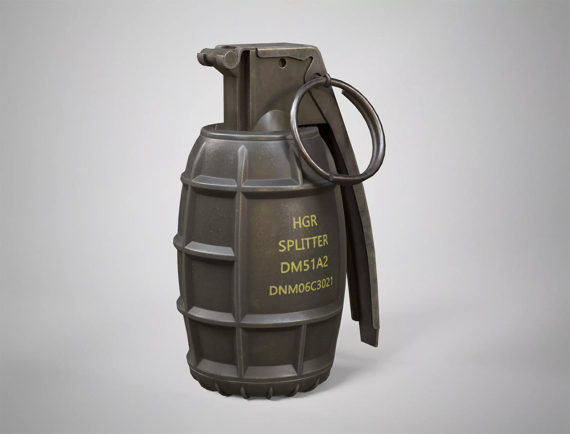 This is a highly detailed, PBR, low-poly, game ready model of a DM51 hand grenade.This realistic 3D model of the game ready grenade is perfect for mmo, fps, shooter, action, rpg, strategy, horror, battle royale, adventure and other game genres. It can also be used in movies, TV shows, video clips, cartoons to extend your filming set. The model was created in Autodesk Maya 2022, textured in Substance Painter and rendered in Marmoset Toolbag 4.