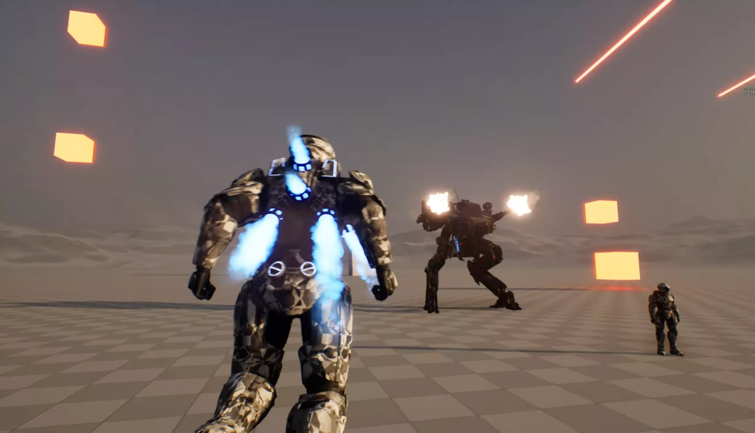 unreal engine, UE5, UE5.4, mech, robot, flying soldier, jetpack, blueprint, flight system, movement component, scifi, military, rigged, UE5 mannequin, enhanced input, pbr, nanite, game ready, educational, prototype, framework, system, single player, starter kit, indie dev, mechanics, template, bundle, mecha, robot system