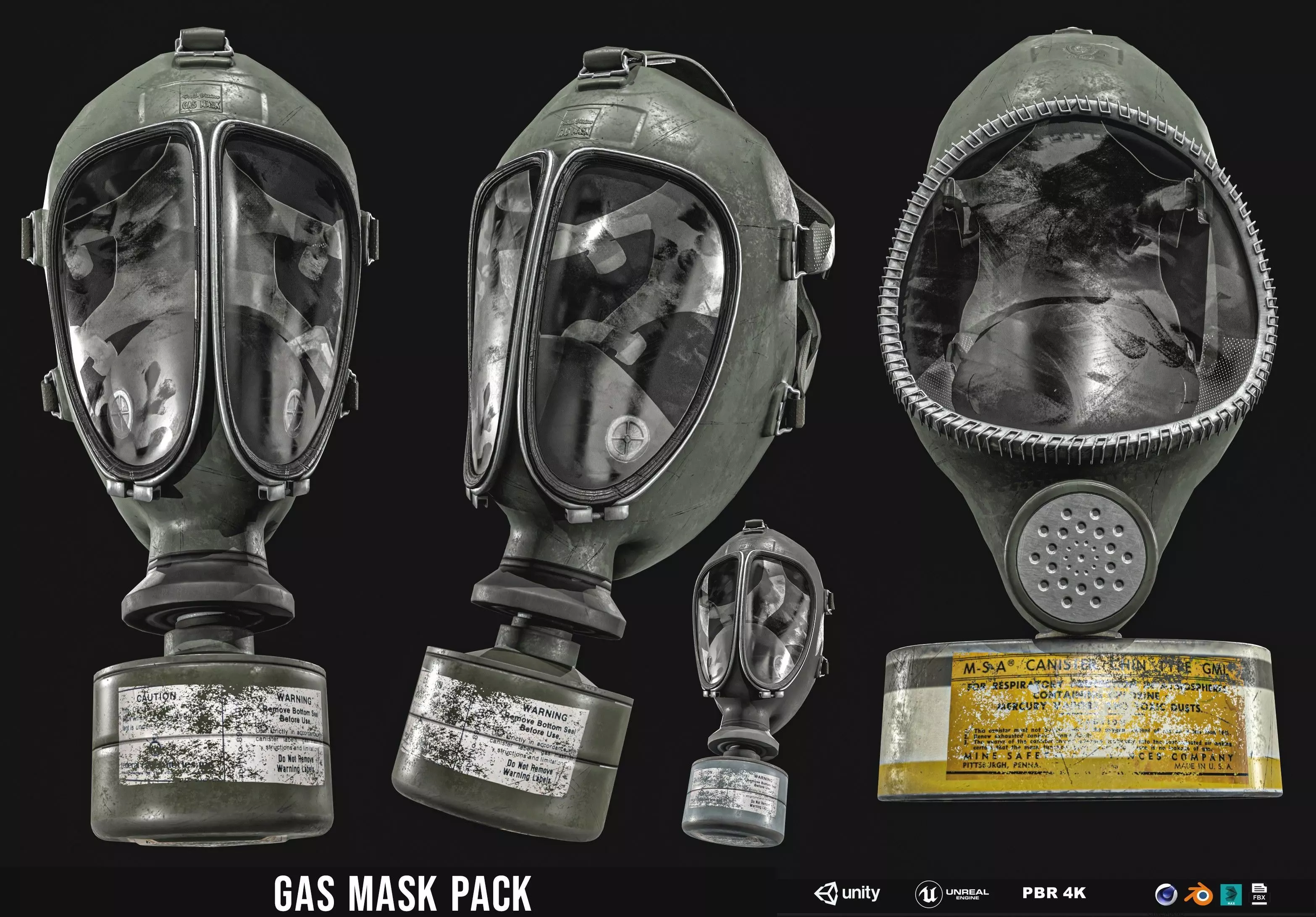 Full face Gas Mask Package Low-poly 3D model