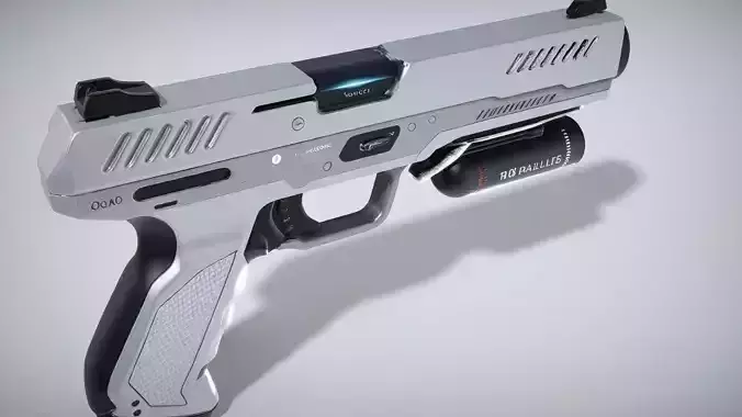 This futuristic smart pistol showcases a sleek ergonomic design with a polymer body and advanced features like a holographic aiming window and laser rangefinder. Each model has 3 levels of detail with QUAD polygons: