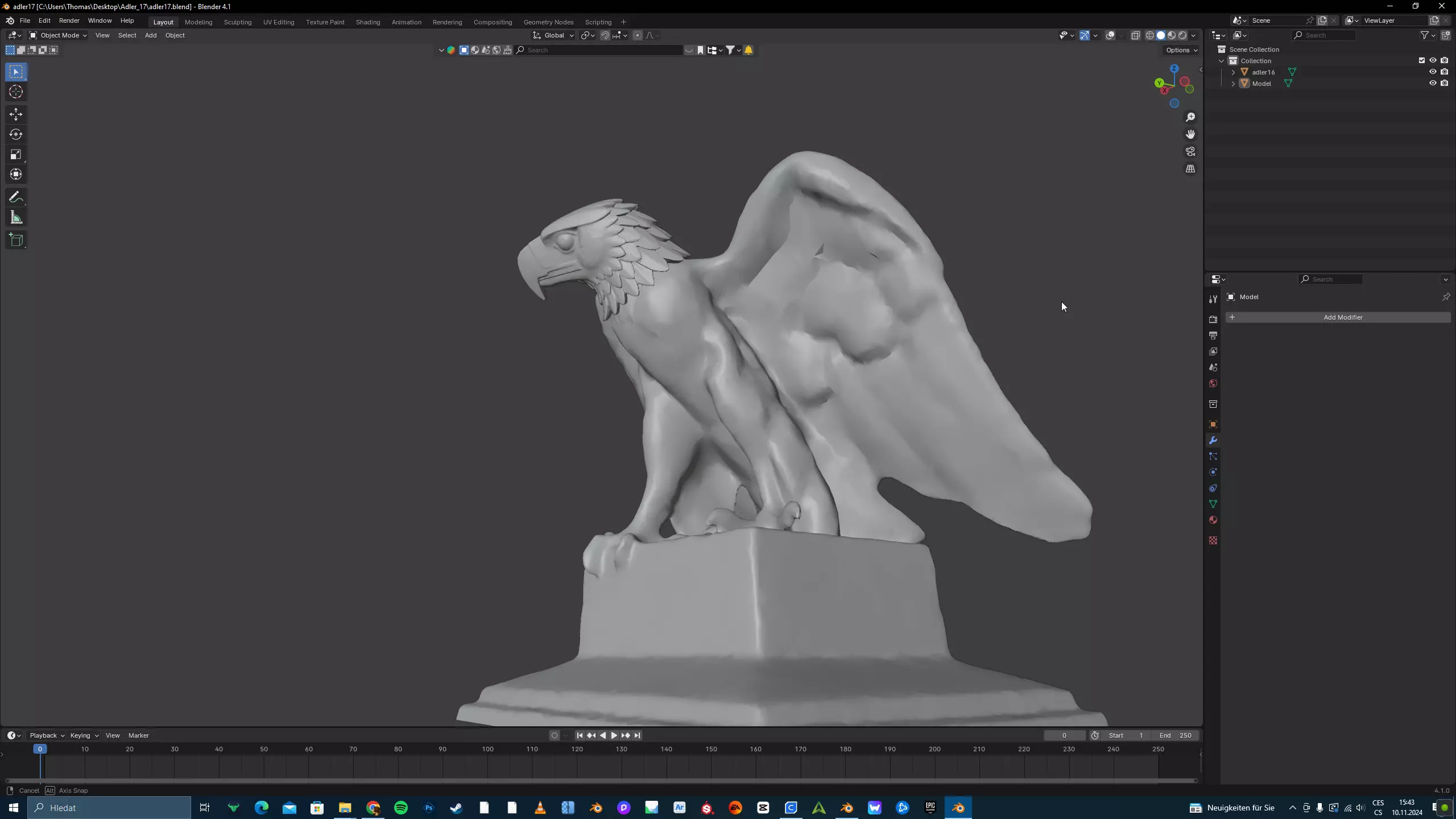 The model has material settings that define how surfaces look (color, shine, transparency, etc.).