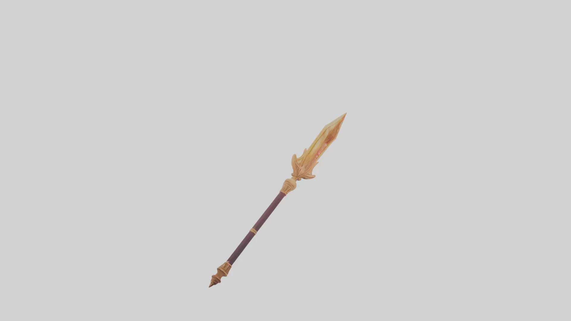 Description: A detailed, polished golden spear with ornate engravings and glowing accents, designed for a AAA gaming experience.