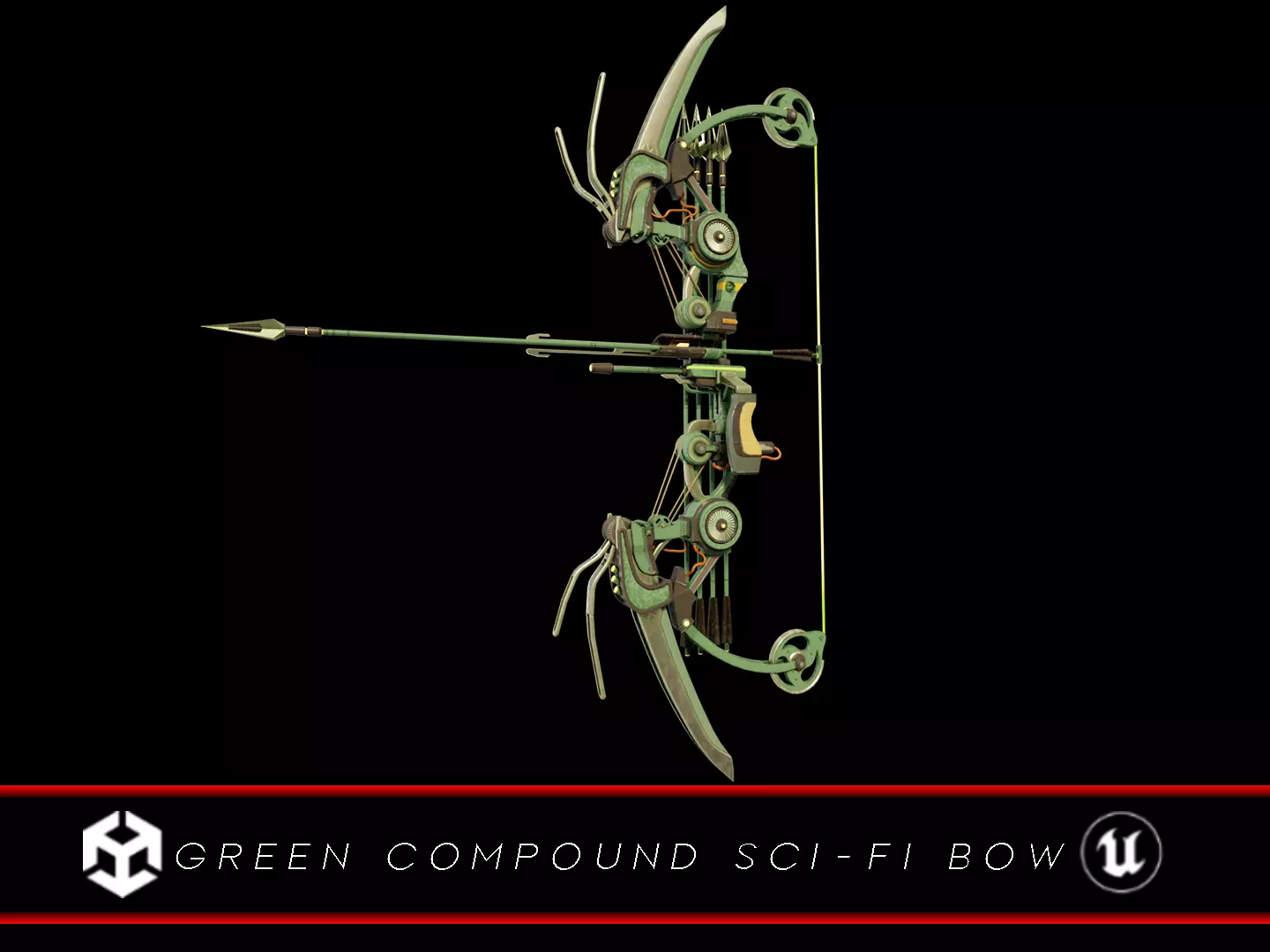 Green Sci-Fi Compound Bow 3D Model. This model contains the Green Sci-Fi Compound Bow itself