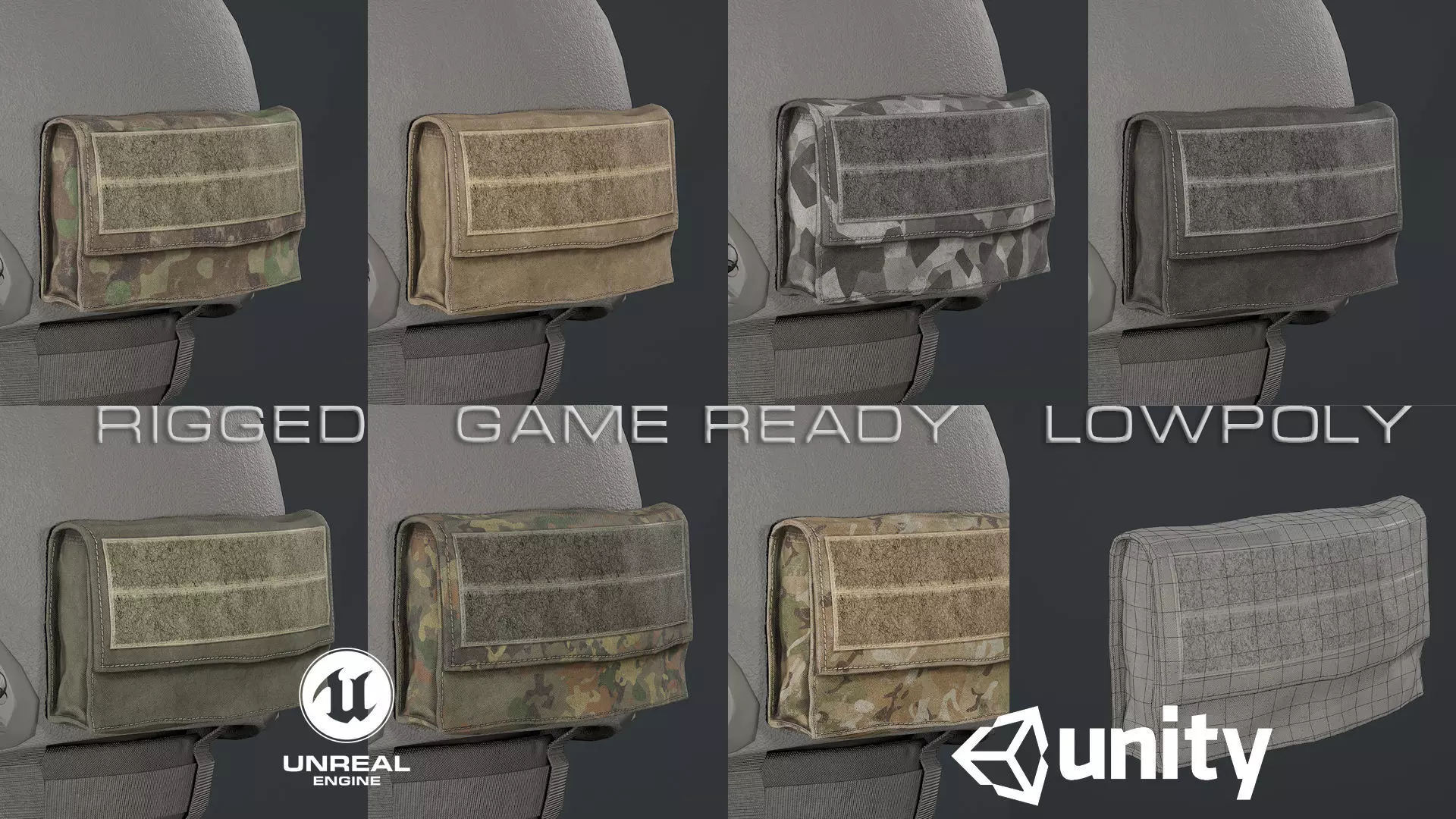 Tactical helmet pouch low-poly 3d models ready for Virtual Reality (VR), Augmented Reality (AR), games and other real-time apps. Rigged for defualt UE skeleton.