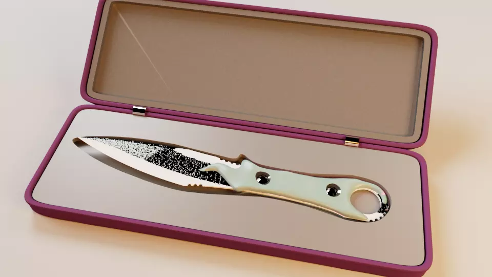 The knifecomes in seven colors and comes with a carrying casedesigned with Maya software and is available in various formatsNot optimized for gamingUsed for decoration and embellishment.In the colors red. blue. green. light blue. yellow. black. and a special color that is for the Vary rendering engine.No need for textures, all details were made from the model's texture.