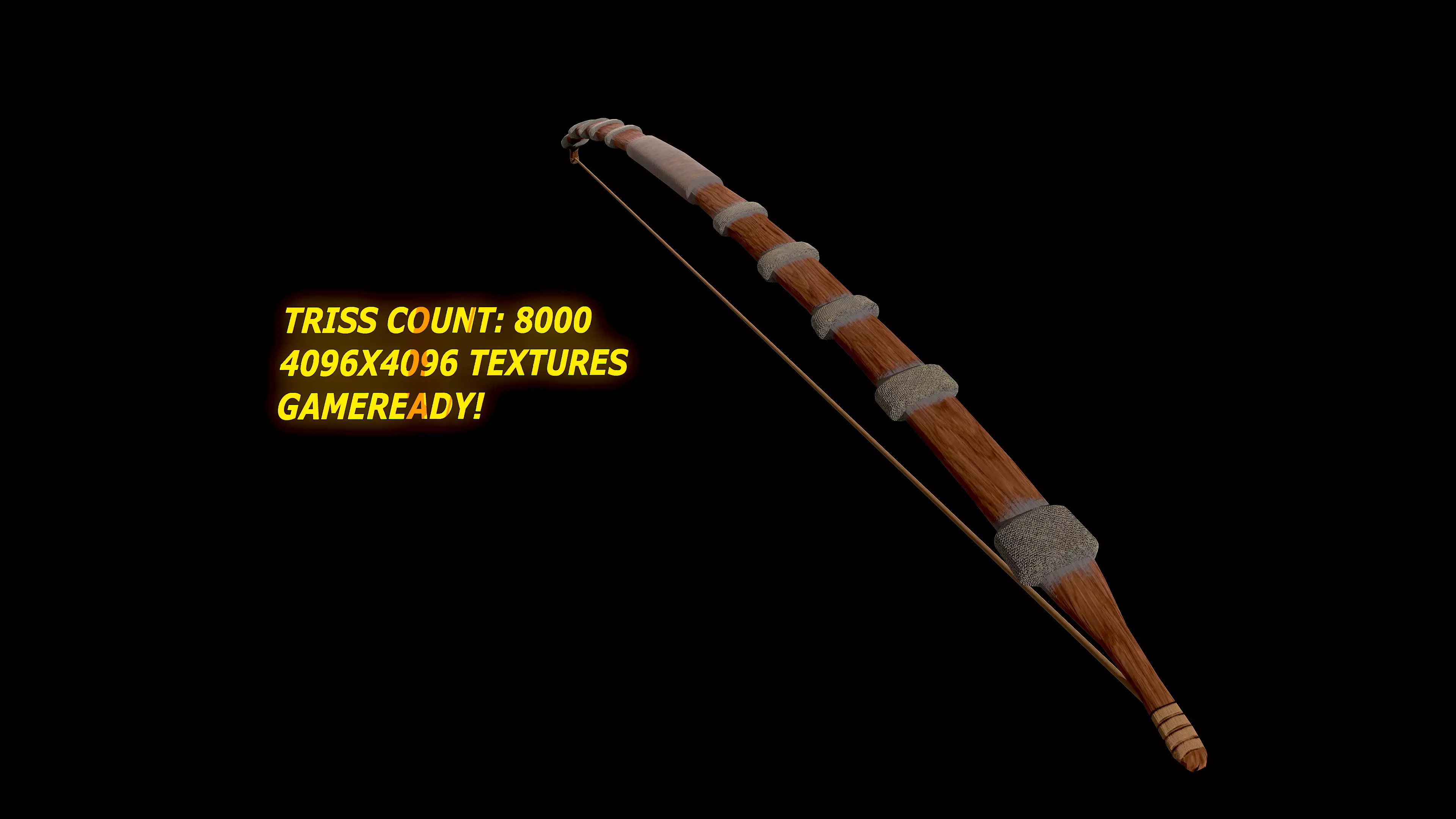 Lowpoly bow modelled for game development. Textures can be resized for your needs. Perfect Silent weapon.