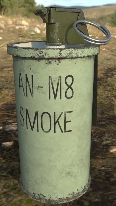 The AN-M8 Smoke Grenade designated as the Army/Navy Model 8 HC Smoke Grenade (AN-M8 Smoke HC) is a U.S. military grenade used as a ground-to-ground or ground to air concealment or signaling device.