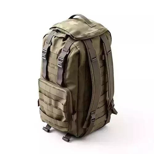 This is a high-quality 3D model of a military-style tactical backpack or rucksack, featuring a distinct camouflage pattern and rugged design. The model is meticulously detailed, capturing the intricate webbing, buckles, straps, and pockets found on real-world combat gear. It is perfectly suited for a wide array of digital applications, including integration into game development projects such as first-person shooters, role-playing games, or survival simulations, where authentic equipment is crucial for immersion. Furthermore, it excels in military training simulations, augmented reality (AR) and virtual reality (VR) environments, and as an essential accessory for 3D character models or digital art compositions. Its clean topology ensures smooth performance in real-time applications, while also being capable of producing high-fidelity renders for static scenes or cinematics. The model is fully UV unwrapped with an optimized layout to facilitate easy texture application and customization. It comes prepared with PBR textures to deliver realistic material properties, enhancing visual accuracy across various rendering engines. Supported file formats include GLB, OBJ, STL, ABC, DAE, FBX, USD, and PLY, ensuring broad compatibility with major 3D software and game engines. This asset is designed for creators seeking a versatile and visually appealing piece of tactical equipment.