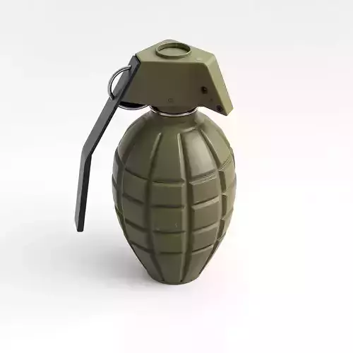 This is a highly detailed 3D model of a fragmentation hand grenade, designed for realism and versatility in various digital projects. The model accurately represents the iconic pineapple-style military grenade, featuring a robust olive-drab body and a realistic fuse mechanism with a safety lever and pin. It is meticulously crafted with clean topology, ensuring smooth deformations and easy integration into complex scenes. This asset is ideal for game development, particularly for first-person shooters (FPS) or military simulation games, providing an authentic and impactful weapon prop. It is also perfectly suited for architectural visualization, creating realistic military-themed environments, or for use in AR/VR applications where high visual fidelity is crucial. Digital artists and animators will find this model excellent for cinematic renderings, short films, or promotional materials. The model comes fully UV unwrapped with professionally crafted PBR (Physically Based Rendering) textures, guaranteeing accurate material representation under various lighting conditions and making it ready for immediate use in modern game engines and rendering software. It is provided in multiple industry-standard formats including GLB, OBJ, STL, ABC, DAE, FBX, USD, and PLY, ensuring broad compatibility across different 3D software and workflows. Optimized for real-time applications, its clean mesh also makes it suitable for high-quality static renderings. Whether for interactive experiences or high-fidelity visualizations, this grenade model delivers exceptional quality and performance.
