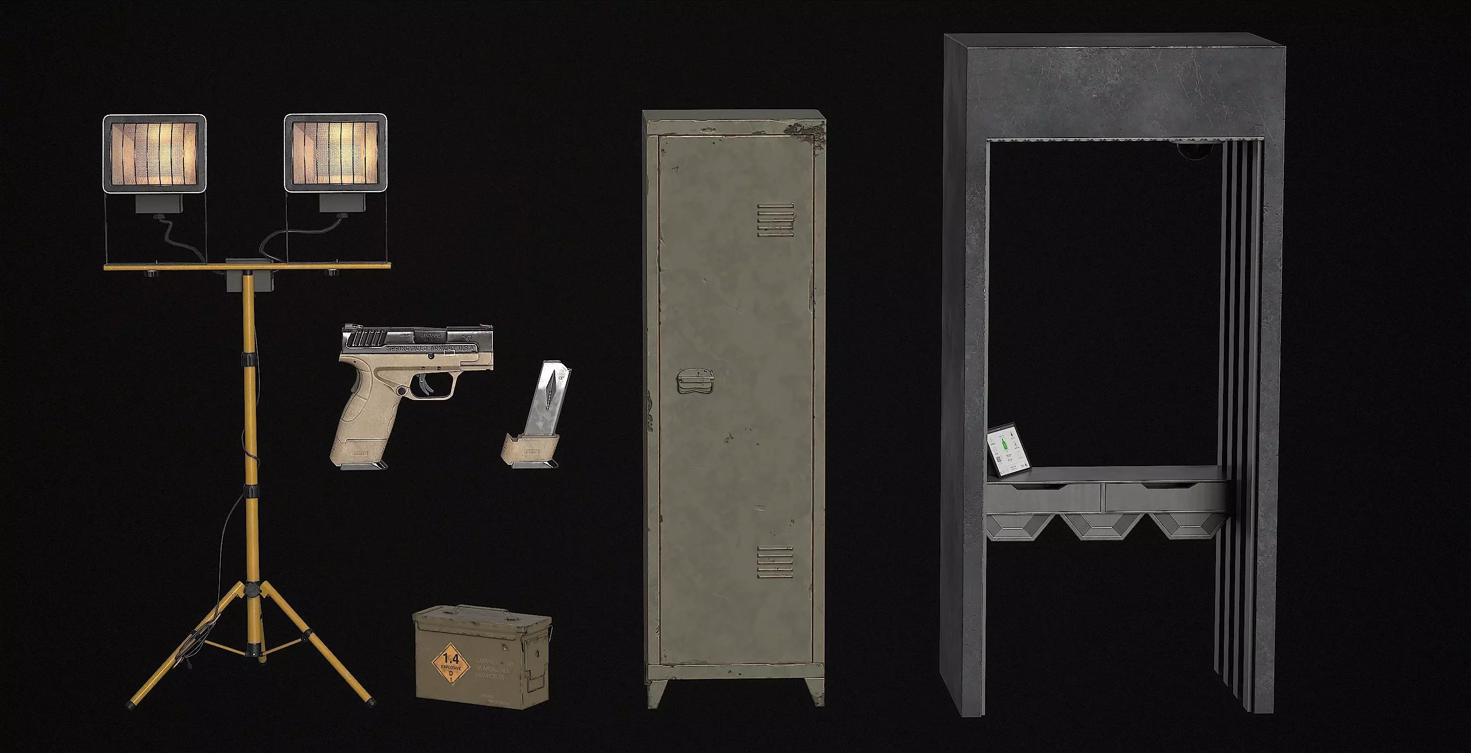 All packed 30K Triangle Ammobox:6K TriangleCabinet:1.5K TriangleFloor Lamp:13K TriangleShooter Cabin:1K TriangleSpringfield Glock:7.5K Triangle