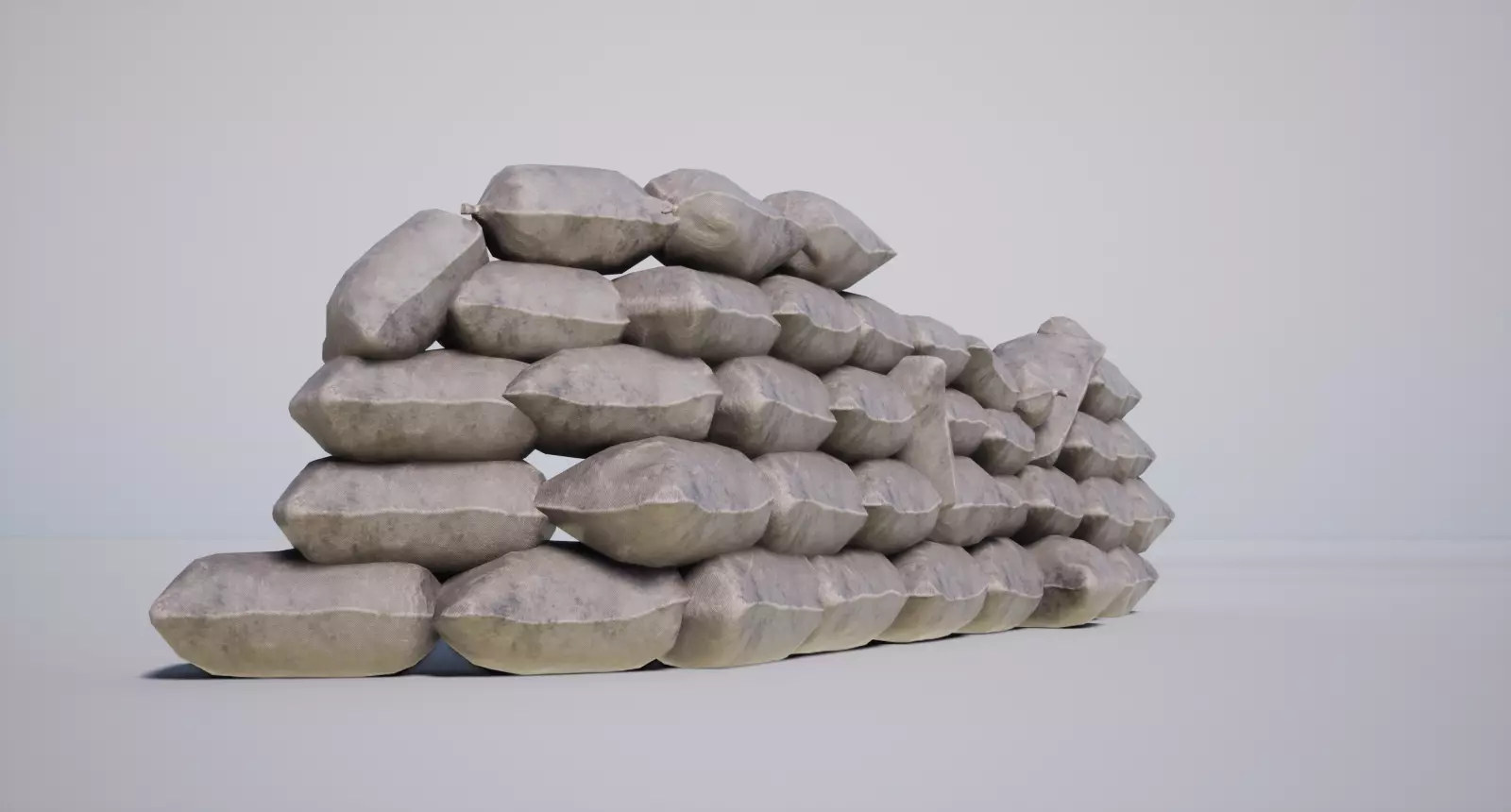 3D model of Military Sandbags with PBR textures, ensuring high fidelity and realism. This low poly, game-ready asset has been designed with attention to detail, offering an optimal blend of quality and performance for various applications.
