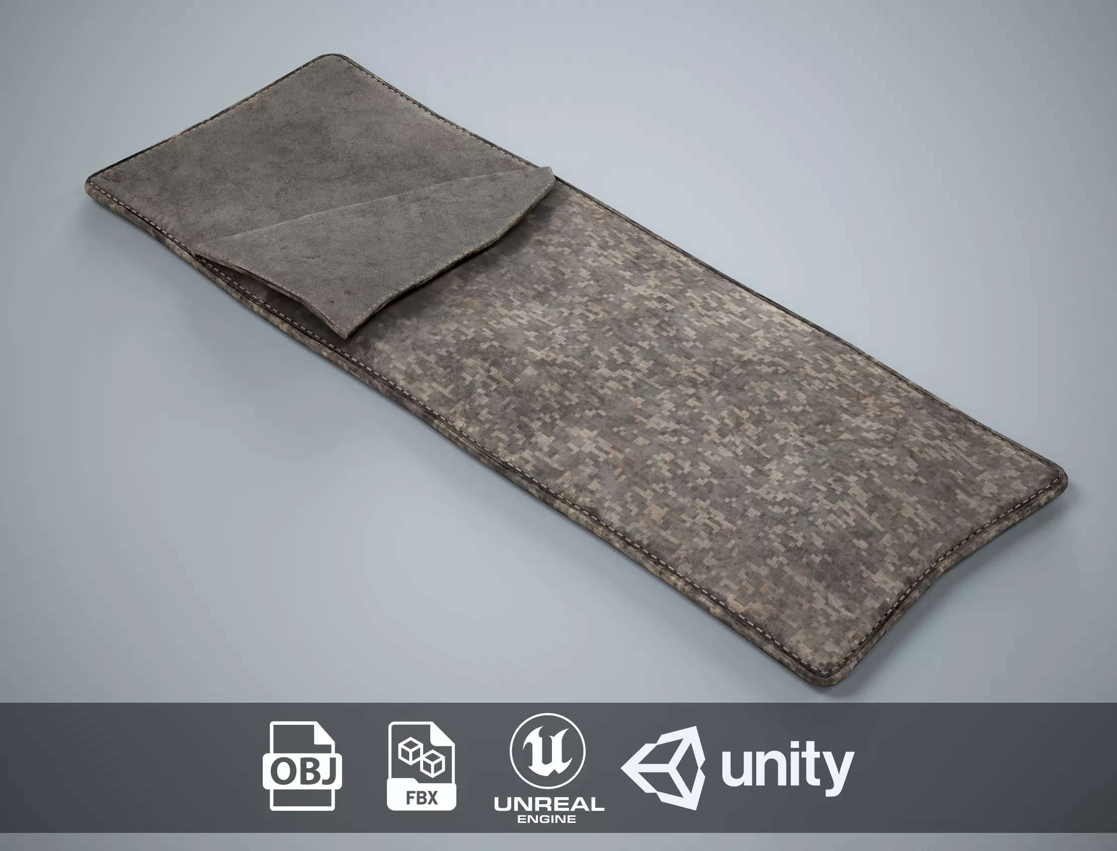 This is a highly detailed, PBR, AAA, low-poly and game ready model of the military sleeping bag.This realistic 3D model of the worn camouflage bedroll is perfect for mmo, action, rpg, strategy games in fantasy, adventure and other medieval genres.It can also be used in movies, TV shows, video clips, cartoons to extend your filming set.The model was created by me in Autodesk Maya 2022, textured and rendered in Substance Painter.
