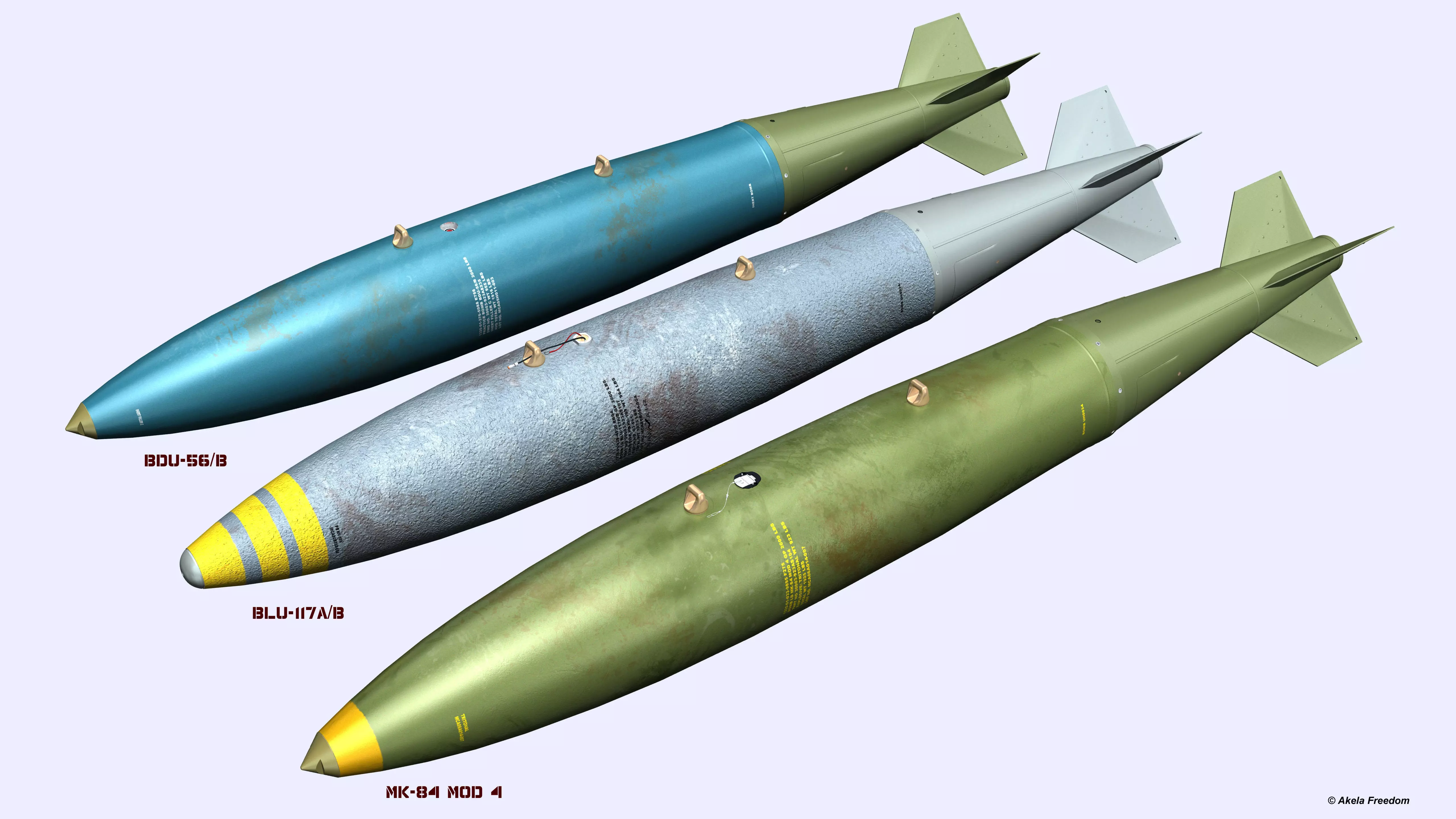 About Model:Highly detailed model close to reality with detachable elements. The main elements of the model are distributed among different files for the convenience of their variable combination.For each type of bombs prepared by two diffusion and bumping textures. Widely used 'mental ray' material.Inclusive - renders with a description of the elements and their purpose. Individual elements are made on the basis of textures