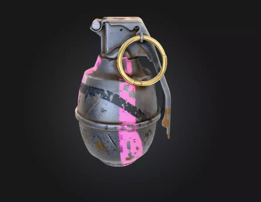 In world-building, this prop fits effortlessly into cyberpunk frontlines, post-apocalyptic scavenger wars, futuristic street militias, or stylized shooter games where every weapon carries personality. Whether as a collectible, an environmental detail, or a gameplay item, the Neon Strike Grenade captures the fusion of symbolic rebellion and destructive power.