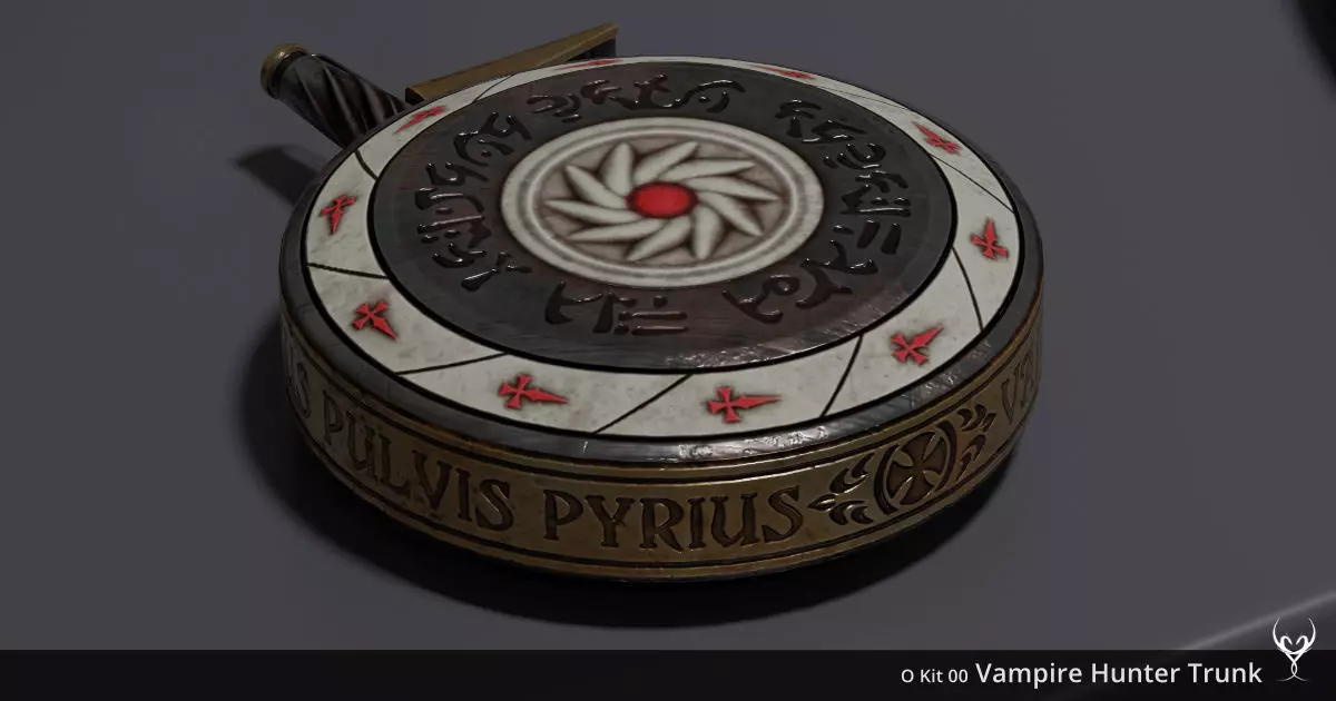 A vampire hunter trunk with the whole kit to hunt being of the night with 46 objects, 99 meshes with 92 textures in PBR style: inclusive stakes, pistols and crucifixes